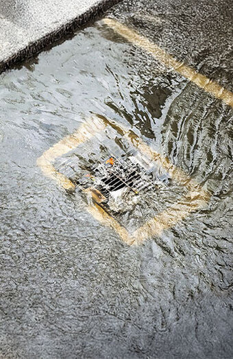 Rapid unblocking of stormwater pits and grated inlets clogged with leaves, sediment, or debris during storms to prevent property flooding.